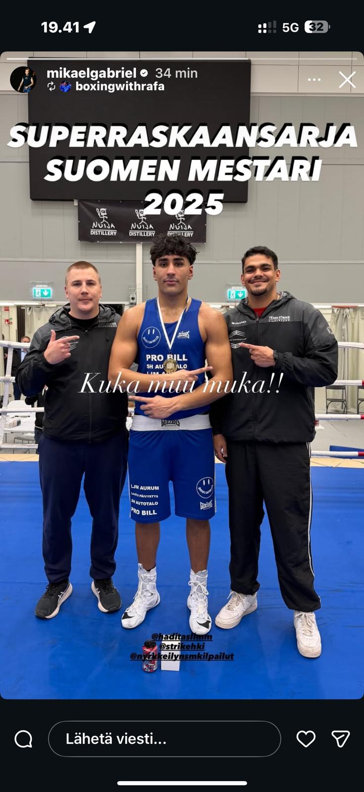 SM-nyrkkeilyn 92 kg sarjan voittaja Hadi Taslin otti IHHT-hoitoja kolmen viikon ajan ennen kisoja – ja voitti kultaa.